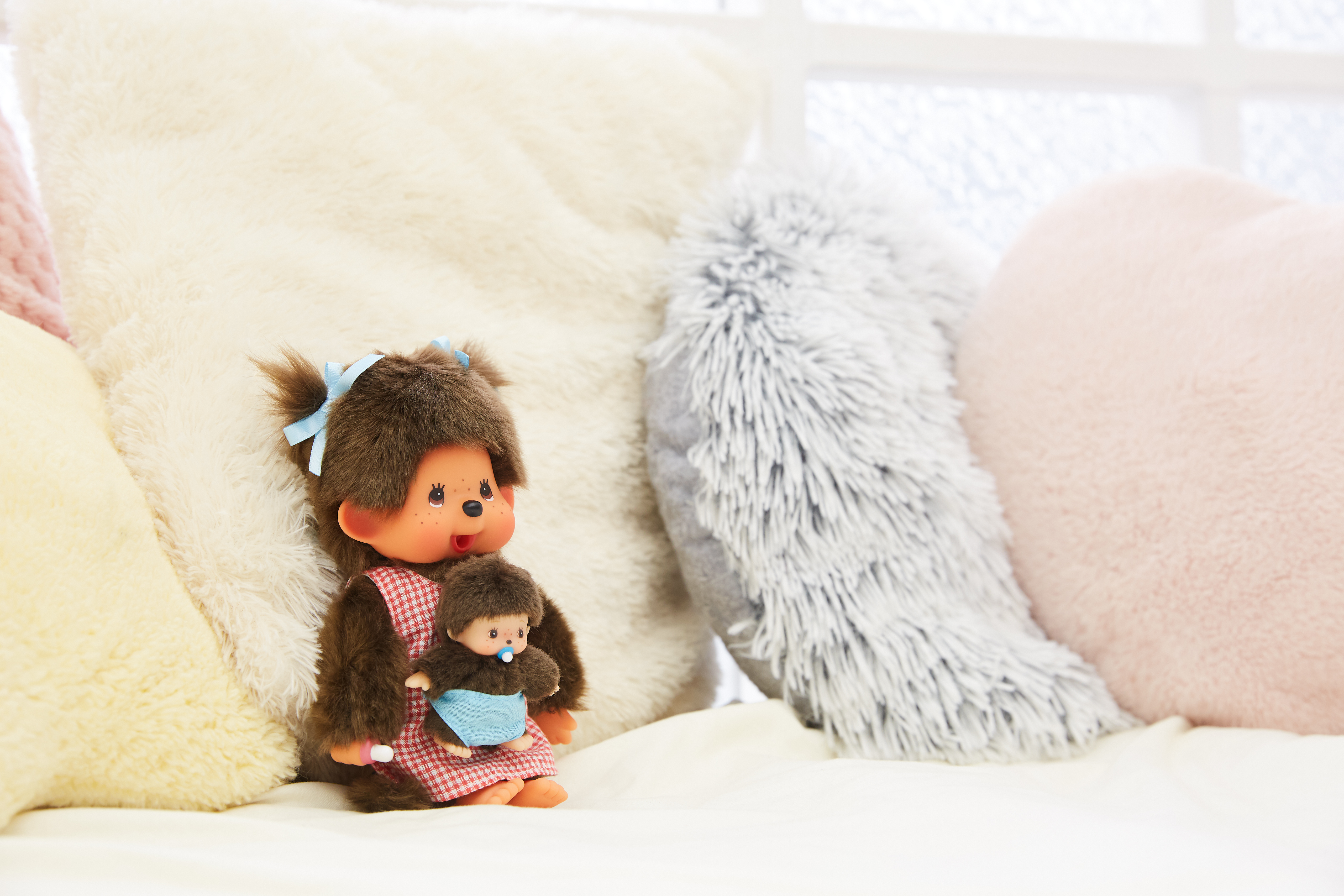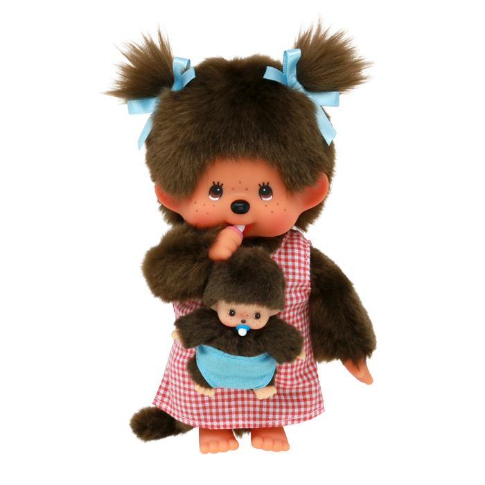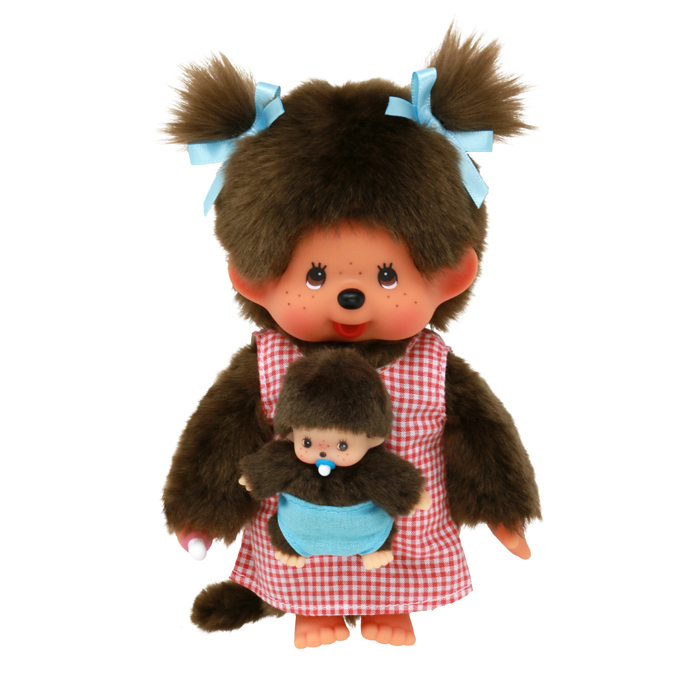 PELUCHE MONCHHICHI MAMAN & BÉBÉ – Une peluche maman Monchhichi qui porte son tout petit bébé Monchhichi ! Une adorable petite famille de petits singes en peluches.