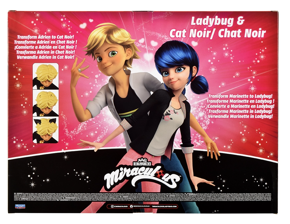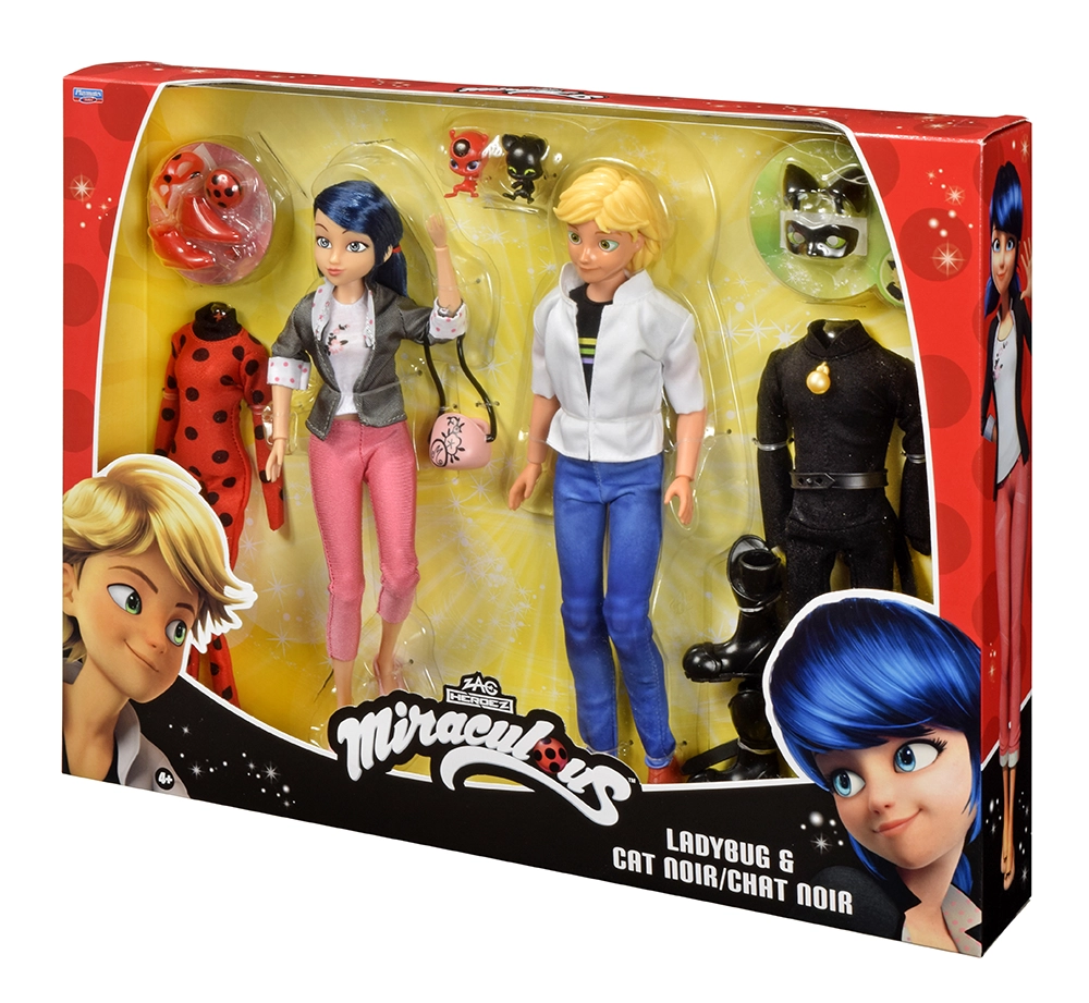 JOUETS MIRACULOUS MARINETTE ET ADRIEN – Ce pack Miraculous comprend les deux personnages iconiques de la série au quotidien : Marinette et Adrien, mais contient aussi les costumes pour qu’ils se transforment en Ladybug et Chat Noir. Chaque figurine pour enfant mesure 26 cm.