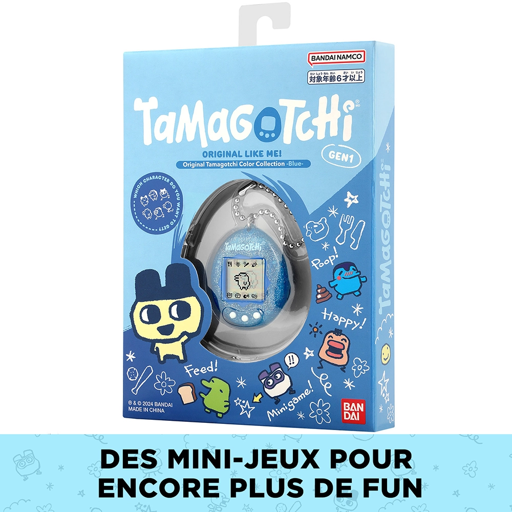 Tamagotchi, l'animal de compagnie virtuel que vous aimiez en 1997 est de retour dans sa forme originale ! Faites connaissance, nourrissez-le, jouez et prenez soin de lui de l’œuf jusqu’à l’âge adulte dans son format original pratique à transporter. La manière dont vous vous occupez de votre Tamagotchi détermine lequel des 7 personnages adultes votre personnage deviendra ! Chaque Tamagotchi contient un ou deux jeux super funs : icône ou nombre. Ici retrouvez le modèle issu de la Collection Couleurs Original Tamagotchi : Tamagotchi Color collection Blue. Une collection à apprécier dans une couleur qui vous ressemble. Associez-le à votre style ou même à la couleur emblématique de votre célébrité préférée !Référence (SKU): 46009